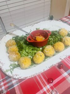 Here’s the step-by-step guidance I used to make the arancini. And don’t be afraid of deep frying at home. As long as you have a thermometer attached to your Dutch oven and don’t overcrowd the pot, they’ll be little restaurant-quality delights that you can serve with your favorite marinara sauce.