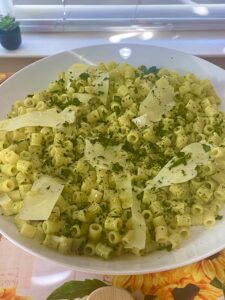 Since we’re segueing out of the winter soup days here in Texas, I decided to try Ditalini other ways as well. They were perfect with basil pesto and shaved Pecorino for book club.